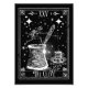 Grunge tarot card design för kaffe älskare! Den turkiska kaffekuckan. Vita och svarta illustrationer med cezve och kaffe kopp, kaffebönor och skelett.