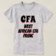 Symbolen för Väster African CFA franc (CFA) med svart och rött färg och med den afrikanska CFA-francen för ord under den, valutan för åtta stater i Väster i Afrika. Den här grått-färgaden T-Shirt kan anpassas till ge som du har ett unikt utseende. Du kan anpassa typsnitt, typsnitt färg, storlekt, ändra text, ta bort och lägga till text, lägg till bild och mycket annat.