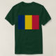 Tchads flagga. Republiken Tchads nationella flagga (Fransk: Drapeau du Tchad, arabiska: ع ل م ا د) är en lodrät tricolor som består av (lämnat till höger) ett blått, en gult och ett rött fält. Blått ersattes för grönt för att undvika förväxling med Mali. Blått symboliserar officiellt himlar, hopp och vatten, gult sol och öknen norr om land, rött framsteg, enighet och uppoffringar. Röda påminner också om blodbadet för självständighet.