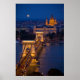 Europa, Ungern, Budapest. Kedjbryggan tänd på natten. Kredit: Jaynes Gallery / DanitaDelimont.com