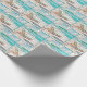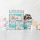 En serenstrandscen har en strippad lounge-stol och paraplyset mot en bakgrund av turkos vinkarare och fluffy vita moln