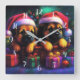 Chalk Teckning 2 Cute Puppies in Santa Hats Fyrkantig Klocka