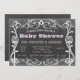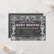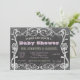 En enkel vintage-reflektor tittar en babyduschmall med prydnadsmönster och blommor och små cirklar av glitter som dras upp på tavlan. Utformning av Amelia Carrie. Om du vill se fler inbjudningsutformningar går du till GlitterInvitations.com eller zazzle.com/glitterinvitations