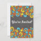 Coola- och Groovy Ice Skating Party-inbjudningar med fredstecken och färglös psykedelisk typografi och snurrningar på en kritersbakgrund. Toppen party för 1960-talet party, bachelorette, födelsedag, studenten etc. McBooboos illustration av hand plockade. Obs! Du kan ändra bakgrund färg genom att klicka på Redigera, bakgrund och sedan välja färg.