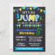 Chalkboard Jump-födelsedagspressning (blått party) Inbjudningar