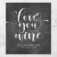 Svart och vit krita stil "Kärlek du mer än vin" Alla hjärtans dag personlig vin flaska-etikett i modern och elegant handstil. Anpassa med kort hälsning/meddelande och avsändare/gifter's namn.
