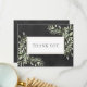 Affärstack för att du lämnar ett chalkboard-kort i vår. Med delikat vattenfärgsformat får du löv som anger ett tackmeddelande i en elegant. Du kan anpassa dig med ditt eget tackmeddelande och namn på motsatt sida eller om du föredrar att lägga till ditt eget handskrivna meddelande ta bort texten. Ett underbart sätt att visa din uppskattning för dina kunder och kunder. Perfekt för ett brett spektrum av företag, inklusive: skönhetsterapeuter, kosmetiker, stilister, nagelsalonger, hår- och makeup-artister, detaljhandel och spa.