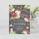 Toppen söt vattenfärgsliten dam vrider ett födelsedagsfest inbjudan-set på en trenderad svart kritbakgrund. Kan även användas för en andra, tredje och andra 4e födelsedagen.