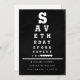 Den här kalkylbrädan för att spara datuminbjudan är verkligen unik. Framtida gäster kommer att helt och hållet kärlek Snellen öga-sjökortet för det här av ett slag, vintage, bröllop spara datum-kort. Chalkboard-typografin är populär i toppen och skapar att detta måste ha sparat det datum som gör påstående. Detta skulle göra det underbart att spara datumet för optometrister och/eller opthamologer. Du kan enkelt anpassa namnen för bruden och trimningen samt bröllop-datumet med hjälp av den angivna mallen. Har du en speciell begäran? Kör till designern på zazzleinvites@gmail.com.