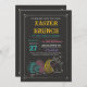 Ett trendig-Påsk-inbjudan med dekorerade ägg och en bunny i en kalkbräda stil.