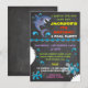 Chalkboard Shark Bassäng Födelsedagsfest inbjudan Ta en bita och sänka tänderna in i toppens inbjudan till partiet Shark bassäng. Det är ett redo att hoppa över hajen för att attackera med vatten stänk och färglös typografi på en krita med ett par faux-bitor tagna ut. Underbar för en flicka eller en pojke födelsedag!