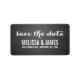 Enkel adressetikett för Bröllop spara datum-skript i kalkylbladet. Utformning av Elke Clarke© for MonogramGallery utskriven av Zazzle. Skicka ut datumkorten till dina vänner och familj med den här vackra, enkla etiketten med ord "spara datumet" skriven i ett vitt skrivmaskinsskript. Tryckt fotoeffekt av svart bakgrundsbild på ritbord. Annan tillgänglig färg.