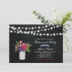 Fira din speciella dag med den här mallen för inbjudan till snyggt. Den här designen har strängen ljus, Mason burk & Blombouquet med en kritbordsbakgrund.
