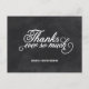 Ett vitt svart och vitt tack med en kritbakgrund och texten "Tack så mycket" i ett vackert skript.