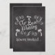 Använda det här kortet till bröllop, repetitionsmiddag, party efter eller något badbröllop. Trendig och populär svartbrädesbakgrund i träkol-grått med vit, handskriven text. Det påminner om en gammal byteshandel eller vintage. Ta tillbaka vintage stil med en dammig skifferskrivtavla. Kusten är en perfekt ställe för att fira de stora bröllopsdagarna med detta tema, använda detta nyckelspel som en tjänst eller ett omhuldat minnesmärke för tider till kom. Design Copyright © CustomInvitesOnline.com