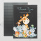 Detta förtjusande tackkort med söta små vattendjup i baby djungelns safari med djungelns löv och frukter på en kalkbräda och polka dots bakgrund är perfekten för varje barndusch eller speciell händelse i stil. Anpassa med din egen speciella text och använda den till party eller den händelse du vill ha. Matchande objekt, till exempel inbjudan till babydusch, frimärke, fotoalbum, magnet, adressetikett, poster, banderoll, tackkort, tack vare klistermärken och mer finns också i vår butik.