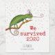 Kameleon går omringad av konetti i firande. Du kan anpassa texten efter dina behov.