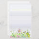 En söt blommigt fodrade ett stall med en gräns av vilda blommor, inklusive kamomill, pinkar och gulter med en besökande honungsbi som dras i bläck med vattenfärg. Söt för brev-skrivning, journalföring, listor med mera.
