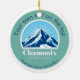 Den här vackra prydnadsformen/medaljen med en logotyp från Chamonix Mont Blanc Frankrike har ett vackert blått berg med solig bakgrund. Det är perfektens gåva till turister på en skidsemester! Du kan också anpassa den med ditt namn.