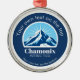 Den här vackra prydnadsformen/medaljen med en logotyp från Chamonix Mont Blanc Frankrike har ett vackert blått berg med solig bakgrund. Det är perfektens gåva till turister på en skidsemester! Du kan också anpassa den med ditt namn.
