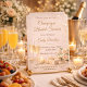 Champagne glöd tema, varm rosafärgad och guldglänsande stil med mjuk bokeh-ljus, blomsterarrangemang och upphöjd glasdetalj, bröllopsfest design för att vara värd för en brunch-samling med mimosauppställning, ljusstake accent och ett raffinerat dukning för en koordinerad fest.
