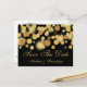 Den här moderna snyggten har en guld-borkeh-punkt mönster med svart bakgrund. Anpassa vykortet med information om bröllop.