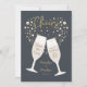 Retro elegance bröllop spara datum-kortet har "Cheers" i handskriftsskript i guld och champagne flutes med bubblor som bildar en hjärtform. Anpassa den med namn och datum. Omvänd sida är en ren och enkel champagnebeige färg som koordinerar med champagneflakarna. Skål för dig!