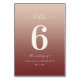Champagne & Cinnamon Red Ombre Monogrammed Wedding Reception Dinner Bordsnummers. Det här moderna Bord-kortet för chic är ett enkelt klassiskt kort och en elegant med en subtil toningstoning och en söt namnteckning skriptcalligraphy-teckensnitt med svan. Visas i den nya Colorway. Finns i flera alternativ för färg eller kan redigera färger i redigeraren (klicka på anpassa ytterligare medan du anpassar). För att se mer, sök efter Chic Paperies samlingar i bröllop 2022 för att se alla de trendmönster som finns och bröllop färg för detta år.
