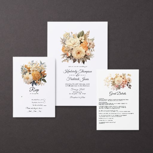 Champagne-färgad blommigt bröllop OSA med elegant typografi anpassade till dina händelsespecifikationer.