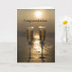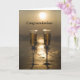 Två champagneglas sitter på stranden med sol bakom sig. Grattisar precis ovanför dem. Perfekt kort för nyfödda eller nyligen förlovade par.