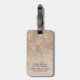 Modern, giftig, snyggt och elegant bagagemärkning. Utformningen har initial och första namn i ett handskript i eleganten på en champagne sparkly faux glitter-bakgrund och dina kontaktuppgifter på baksidan.