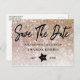 Notera den kommande söta 16 födelsedagsfesten med denna elegant "Sweet 16 Födelsedagsfest Save the Date. Det här trendiget är modernt för att spara datumet på vykortet innehåller ett av champagne sparkly glitter struktur och kalligrafiskript "spara datumet".