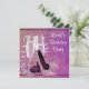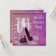 Vacker lila, rosa glitter, band och champagneglas och höga klackar kvinnors födelsedagsfest inbjudan. Denna eleganta rosa och lila födelsedagsfest inbjudan kan enkelt anpassas för ditt evenemang genom att lägga till dina evenemangsuppgifter, teckensnittsstil, teckenstorlek och färg samt formulering.