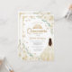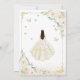 Inbjudan till Champagne, guld och vit Quinceanera firande. Med brunettflicka i boll-klänning, skript, guld-butterflies, vit kräm ro och tiara. Perfekt för en elegant prinsessan stil glam firande. Anpassa med dina egna detaljer. Skrivna Zazzle-inbjudningar eller digital utskrivbar mall för omedelbar nedladdning.
