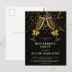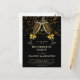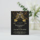 Champagneglas och gyllene band med gyllene konfetti på svart med vit text, pensionsfest inbjudan. En trendig guld och svart inbjudan med gnistrande champagnegla. Personifiera med din festinformation. Perfekt för både män och kvinnor.