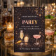 Modern champagne lights theme in deep black and gold, featuring sparkling star accents, ribbon detail, and glowing candlelight with champagne and cocktail elements. Designed for upscale evening gatherings, cocktail nights, and birthday celebrations with a polished, elevated table scene.