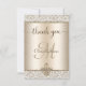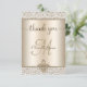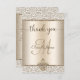 Tack till gästerna med den moderna manustypografin på trendigets champagne bröllop-design. Champagne glitter damask kant den fingerade metallbakgrunden. Monogrammet för bruden och brudgummen visas på framsidan och meddelandet inuti kan ändras för att anpassa kortet med ditt eget hjärtliga tacksamhetsbudskap.