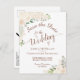 Det här roustiska bröllop spara datum-vykortet har en elegant blommigt med vattenfärg med vackert handmålat ro och blommar i nyanser av champagne eller mycket blek persika. Typografin har äldre skriptcalligrafi med utrymme för namn, datum och plats för bröllop. Baksidan har plats för en kort-anteckning och en söt bild med "penna oss in". Fashionable, bohemian och chic, det här kortet är ett underbart sätt att låta din familj och dina vänner få veta om ditt kommande bröllop.