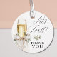 Denna runda "Let's Toast" tacksamhetsetikett lägger till en elegant och festlig touch till alla engagemangsfiranden. Med en glänsande champagneflaska, akvarellband och ömtålig grönska, förstärker denna etikett favoriter, välkomstpaket, dessertaskar och gästpresenter. Designad med ett matchande "Tack" -manus, är det perfekt för vinterengagemang, bröllopsevenemang och säsongsfiranden. Kompletterar andra föremål i "Let's Toast" -samlingen för ett vackert enhetligt eventtema.