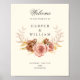 Bröllop välkomnar poster, med en vapensköld med vattenfärgat ro i ett färg-champagne, chokladbrun och rosa. Faux guld präglade detaljer och guld blad. Observera att detaljerna i guld är en kopia, inte guld.