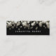 affärskort för chic och elegant i ett pappert, storlekt mini-format med vit och champagne bokeh ljus på en skarp svart bakgrund, med modern vit text. Lägg till kontaktinformationen för fullt längst bak. Ett unikt val av elegant för alla yrken, exempel för evenemangsplanerare.