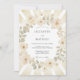 Denna design har en varm palett av kräm och champagne nyanser accentuerad av dämpad salvia grön bladverk. Mjuka akvarellrosor är arrangerade i en delikat komposition som skapar en mjuk blomsterlysa. Ljusstrålar utgår från bakgrunden och ger en eterisk och strålande atmosfär för en romantisk tillställning.