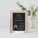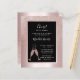 Mot en bakgrund av rosa metallisk folie präglas vår eleganta 21-årsfestinbjudan av en feminin rosa glitter-ombré-overlay med champagneglas som skålar åt födelsedagsbarnet. I en svart ram med rosa foliekanter hittar du exempeltext som du enkelt kan ändra i personaliseringsmallen. Baksidan av denna budgetvänliga 21-årsinbjudan visar samma unika ombré-glitterdesign.