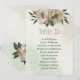 Unikt bordnummer sittplatskort med romantiska champagneblommor och gröna blad.