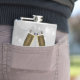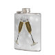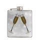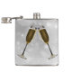 Ett par eleganta gyllene champagneglas, flöjter, som vidrör för en elegant skål för din årsdag, förlovning eller bröllopsfirande, eller början på ett nytt år. Formellt eller informellt, det är dags att njuta av lite cocktailparty bubbel. En vacker glänsande silverbakgrund fullbordar bilden.