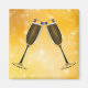 Ett par eleganta champagneglas, flöten, vidrör för en elegant skål för din årsdag, förlovning eller bröllopsfirande, eller början på ett nytt år. Formellt eller informellt, det är dags att njuta av en liten cocktailfest bubbel. En vacker guldbakgrund fullbordar bilden.