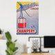 Champery Swiss Vintage Ski Poster med en röd bricka i hiss.