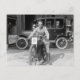 En motorcykelracerförare tar med sig sin trofi. 1922