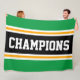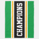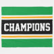 Den här färgstarka, sportiska designen har en atletisk CHAMPIONstext inuti ett stort svart vågrät i mitten av tävla rand med intilliggande gyllene gult och vita ränder mot yttre ljusa ränder i kant i grönt. Färg och text i den här utformningen kan vara personlig.