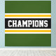 Den här färgstarka, sportetiska designen har en atletisk CHAMPIONstext inuti ett stort svart vågrät i tävla rand, med intilliggande gyllene gult och vita ränder mot yttre ränder av skoglig grönt i kant. Färg och text i den här utformningen kan vara personlig.